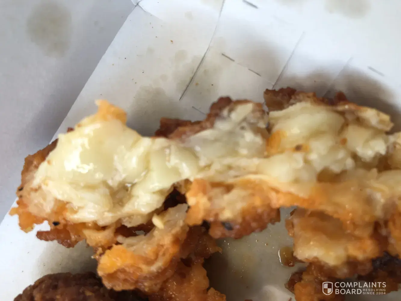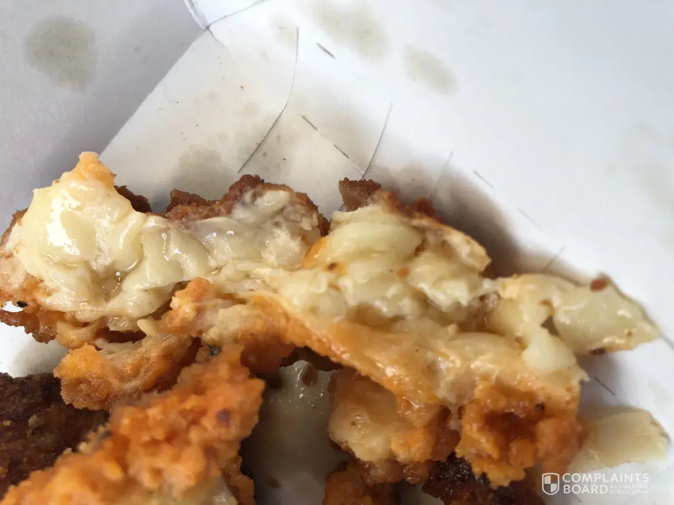Tried to send an email with attached photos but was unsuccessful. I frequent this particular location often because it is close to my work. I have a 30 minute lunch break and got back to work to find most of the chicken extremely well done on the out side and semi raw on the inside. The 1st piece I had was chewy and the 2nd was raw with a lot of liquid that...