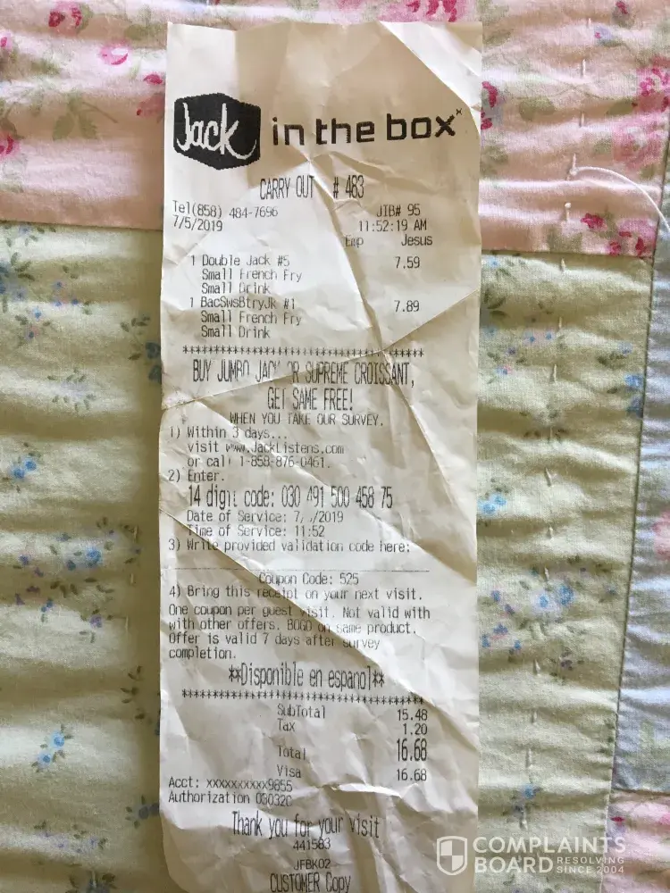 Today, July 18th 2019 is my day of the week that I chose Jack in the Box for lunch as I am a frequent once a week customer. Although I will have to say that I may not be such a frequent customer anymore. I have been paying for extra items, and I say paying as the items are on my receipt but are not on my product. Do the cooks read the ordered menu when it...