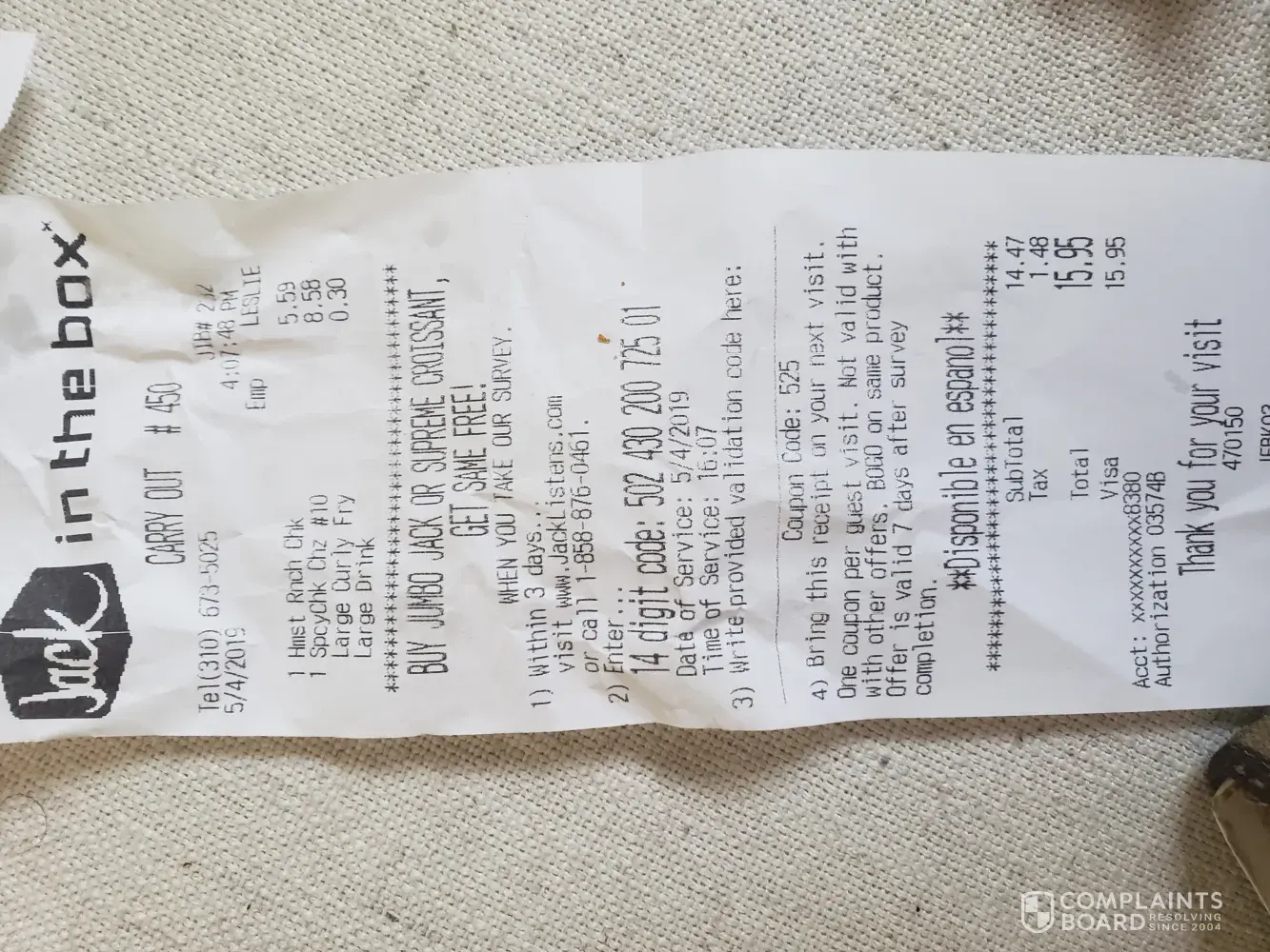 I don't ever want to be coming into another Jack in the Box over this incident.