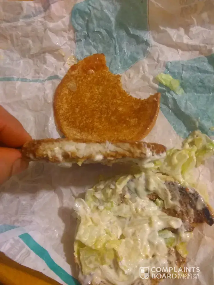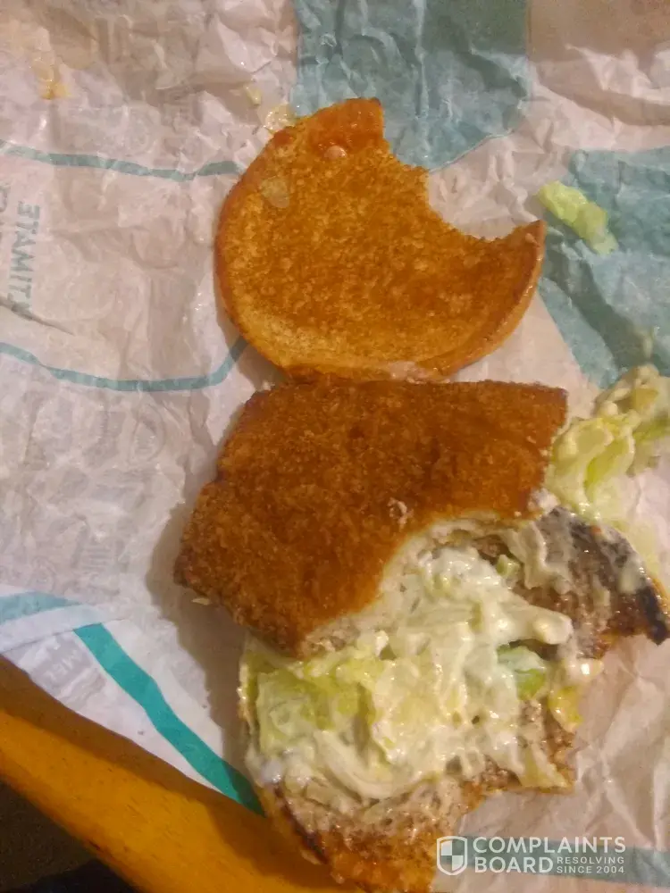 Hello, i'd like to report a problem I had with my homestyle ranch chicken sandwich. The chicken breast wasn't cooked properly, there wasn't only a brown crust on half of the breast. It also tasted a bit gummy. Honestly, it almost made me throw up. I just thought it was necessary to report this. Although every other time I had the sandwich it was pretty good. Thanks for reading!