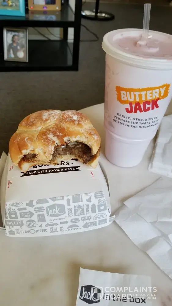 I recently went to the jack in the box in la Marque Texas I had a ribeye burger meal and my wife had a buttery jack meal we purchased our food on our lunch break when we went to eat it was burnt and had plastic on the burgers I have tried to talk them they don't answer there phones I would like this taking care of immediately this is horrible service