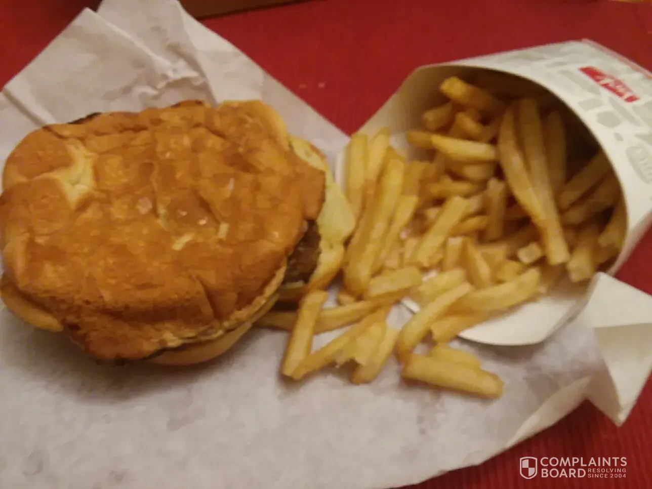 I got there at 5:02 to order a hamburger meal first I didn't know what to order because I have never eaten at jack in the box, I was waiting for my order and it was taking time by the time I got my order it was 5:17. So I headed home when I opened the bag the fries were cut into pieces and it was not hot, then I opened up the burger and it looked so ugly, the bun was burned and the burger looked awful. I gave it to my dog when I go to McDoalds I always have good service but this restaurant looked unclean and the food was not good.