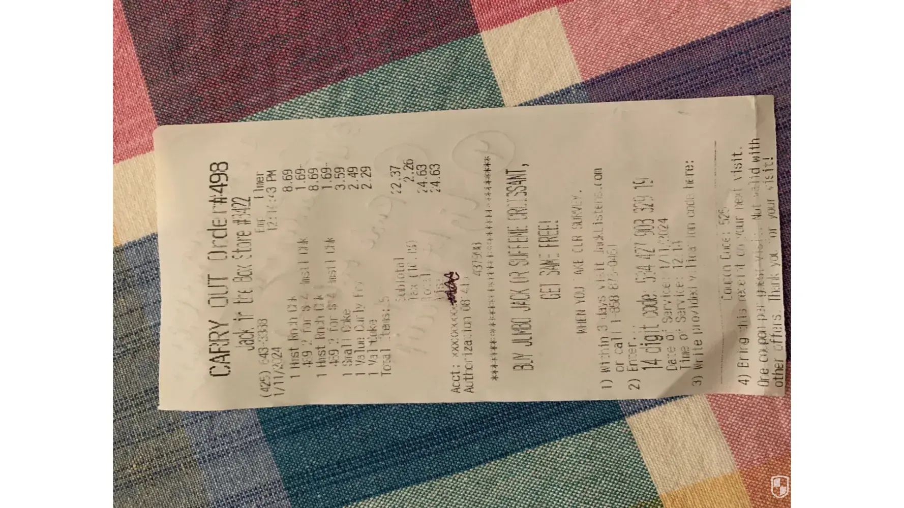 Nothing in the order was right. Chrispy Jack wrap was cold /old. Spicy Chicken Sandwitches had no chicken in them and the curly fries stale and the tacos were missing! Steve Corie
