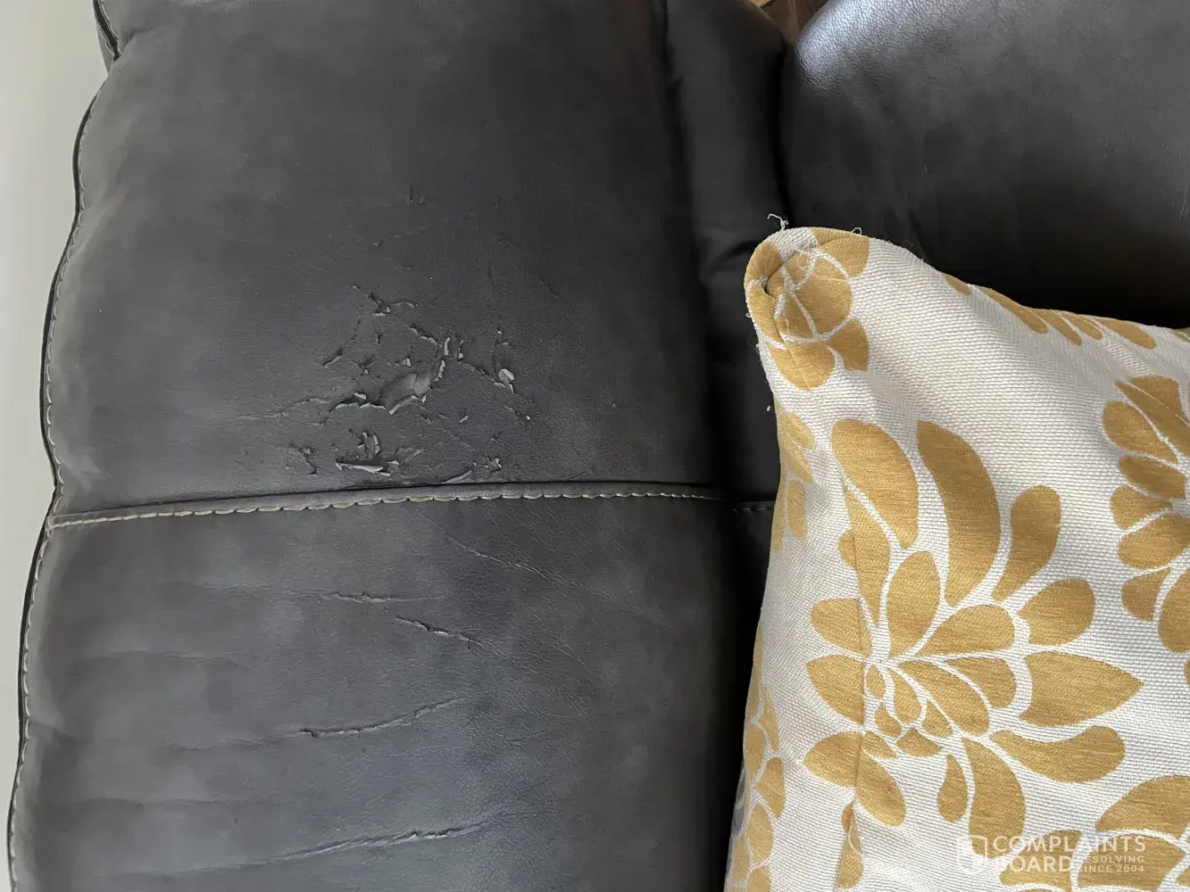 I am beyond the one year mark of the original delivery of my CUSTOM order. It arrived with a crushed piece and the back leather tore up on the back of another piece. 1 year later 7 repair appointments (loss time at work) and 3 replacement deliverys and I still have the SAME crushed piece and the tore up back leather on another. They stapled the leather into...