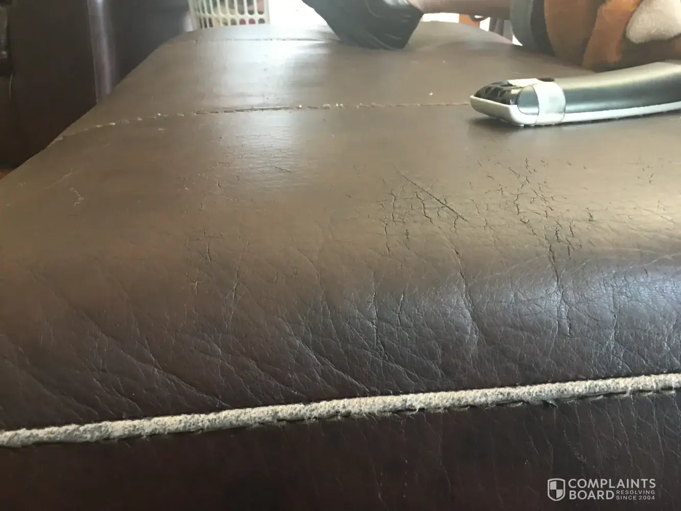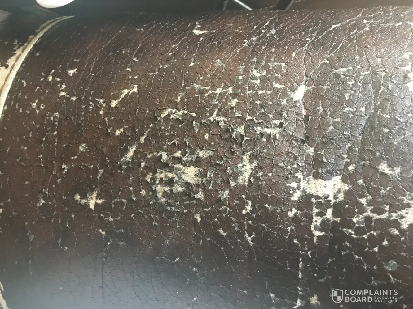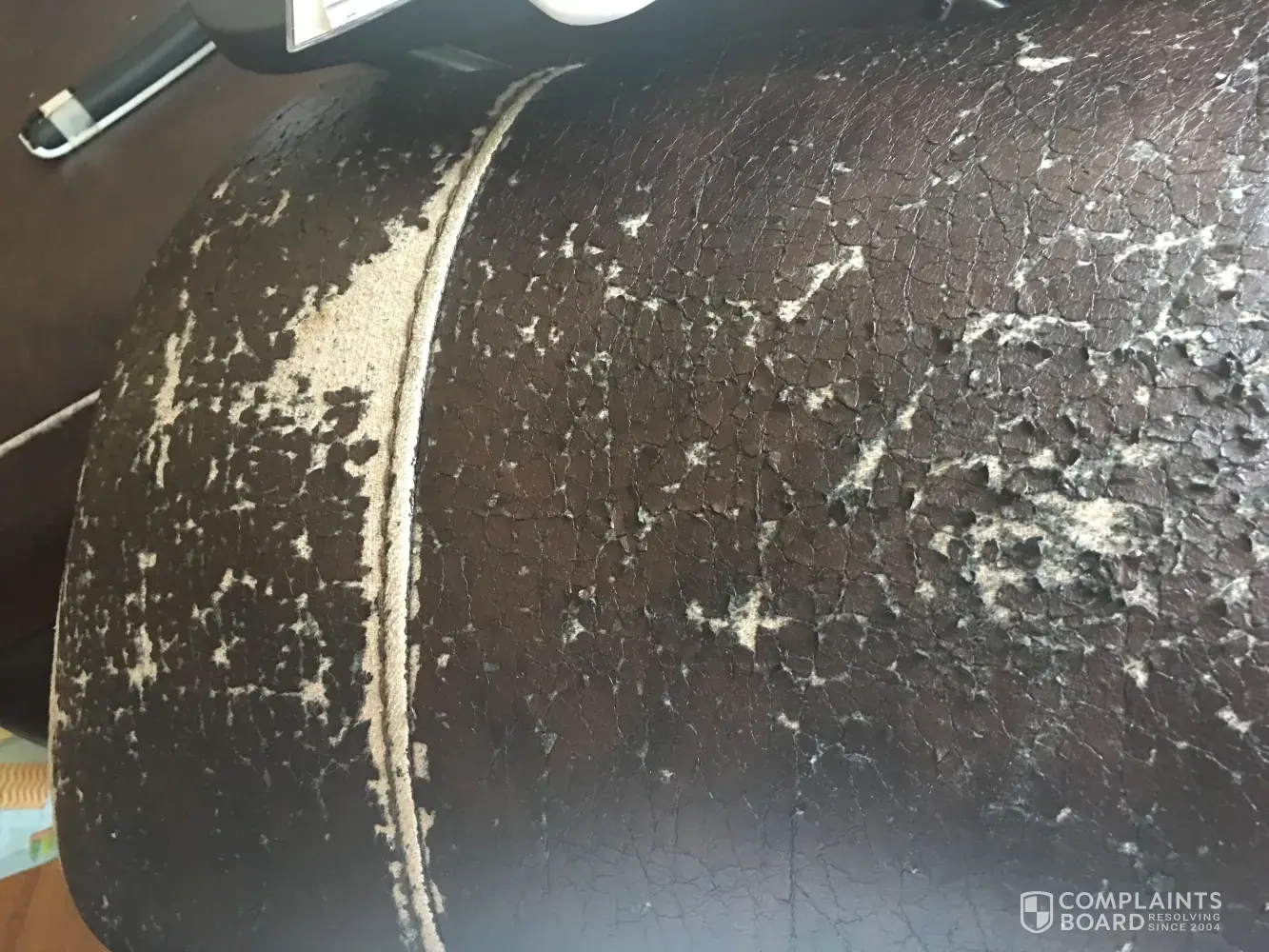 I purchased leather catnapper recliner sofa and love seat from Grand home furnishings. The fake leather material used is coming off the seat area and back area. Has anyone else ran into this problem? It's still a comfortable chair but tired of cleaning up small pieces of fake leather.
