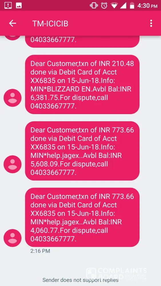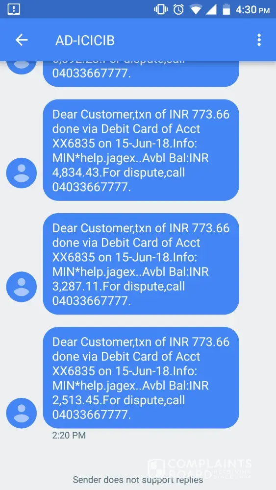 Today 773.00 RS 5 times deducted from account which I'm not using any of your web site or I didn't made any transactions. Please credit money back to my account and let me know the reason that why fraudulent transaction happened from my account.