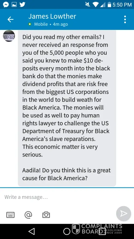 If you could simply answer those six questions, I will consider removing my complaint from this website. If, however, you fail to give solid, factual explanations, then my complaint will remain. There are, however, other questions that I would also like to ask, but of which I will not stress the immediate importance of. First of all, could you please explain how the information contained within my complaint is "racist" and "discriminating"? Those are some powerful terms to throw around in an attempt to paint me as the bad guy–which you sure do try to do a lot–but they really have no facts to support them.