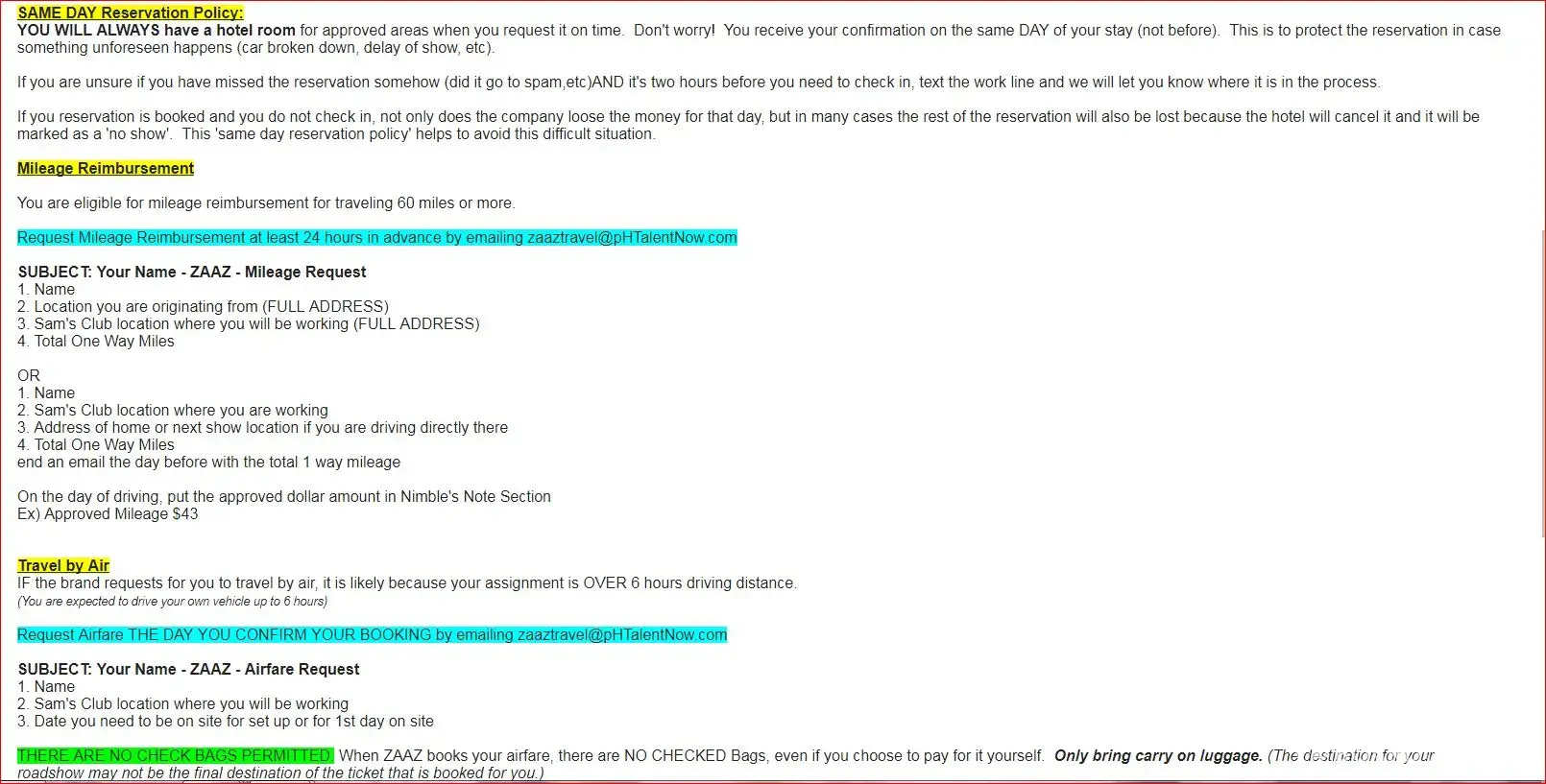 This company lacks business professionalism! You are hired into the company, have to fight and call more than five times to get a training schedule, you send emails with NO REPLY until you finally call office, and office refers you back to a gal names Michaela, who NEVER responds to emails. (She should be fired for not doing her job and communicating with the staff) Now fast Forward you are trained, then SILENCE for weeks. You send 10-15 emails to this Michaela person, over the course of the next 3-4 weeks, and AGAIN no response, then out of the blue you get an email (4weeks later) stating you have a roadshow to go to! However by now, due to lack of respect from the company by acknowledging your existence and responding to your attempts to contact them regarding shceduling and training, you have moved on to another PAYING job, I don't know, one that actually communicates with you and sends you to work. Yes, so out of professional courtesy you let this company know that you are unavailable for this gig as due to lack of communication on their part, you have accepted employment with another company, and guess what? 4 emails sent regarding this matter, NO RESPONSE (surprise!) This is NOT a goo company to work with, they are unprofessional, and do not consider their employees rights or financial well being. Oh and just to be clear, all of this they did to their staff over the HOLIDAYS...yes no income for the Holiday season and No communication as to why or what if or we are slow, or you are fired or we shut down...NOTHING well until 4 weeks later when hey . need you to go across the country at he drop of the hat on Christmas week. If you are considering working for them, think real hard, #costco #Sams club should rethink their contract with them...ZAAZ / phtalentnow, needs to be retrained as a business.. or simply shut down. Treatment of their New people is horrendous.
