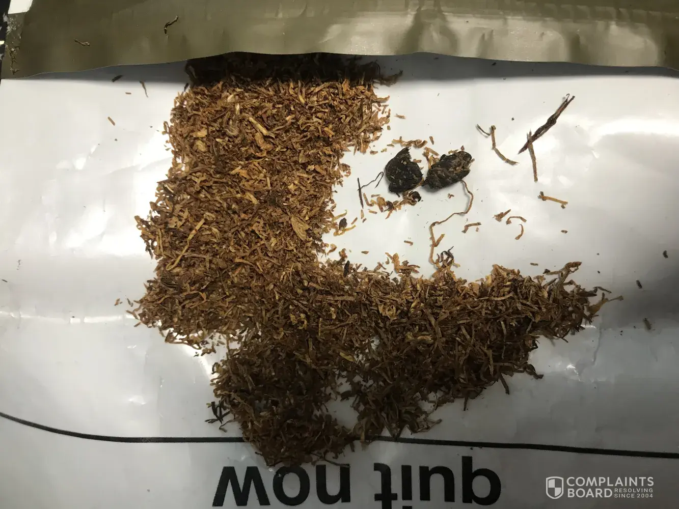 Desired outcome: Replacement Pouch of acceptable quality Tobacco &/or a refund and an explanation as to why your product has nose dived recently... I've been a loyal customer for a Very Long Time and I'm currently feeling very disappointed!