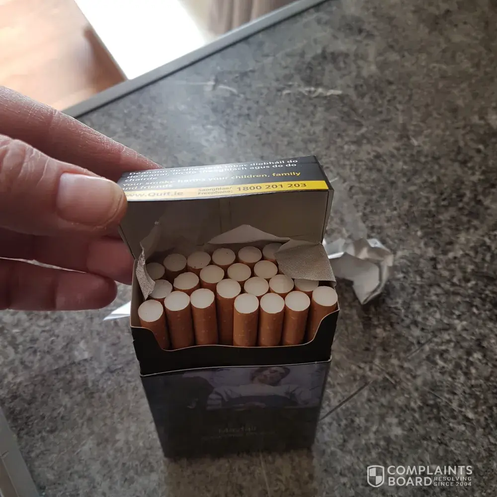 I purchased this pack of cigarettes today, I smoked two cigarettes from the pack the third cigarette as you can see from the picture which has been lit, I noticed it wasn't right, I then searched the whole pack to find two more cigarettes with the same default (a cut in the side of the cigarettes) the pack was fully sealed when I purchased it therefore the defect has occurred before being sealed! I am extremely angry as all my family members smoke these cigarettes and spend a considerable amount each week on them, unfortunately if this doesn't get resolved I will be changing brand of cigarettes I smoke and will be advising my family members to do the same
