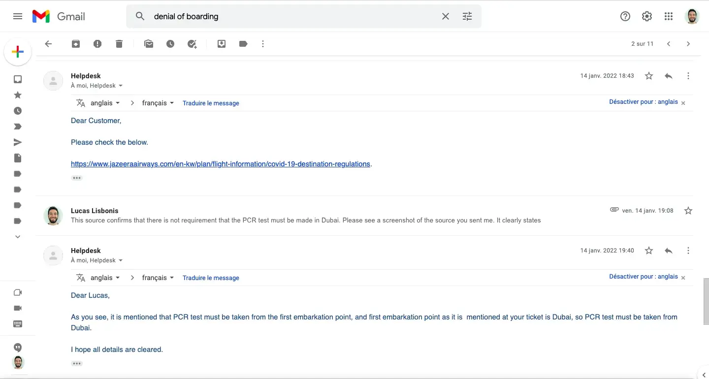 The supervisor denied us the boarding as per the Nepalese immigration rules for the reason that the PCR test was made in France and not in Dubai (our city of embarkation). We were surprised so we asked him to show this rule written down on the page of the Nepalese immigration or on the airline’s boarding conditions. This information does NOT appear on neither the entry conditions of the Nepalese immigration offices nor on the website of your company. When we asked him to justify the source of this information, he replied to us: “every passenger must be aware of the conditions of entry of the travel destination, that we would be deported from Nepal, that Jazeera will provide no refund and that he cannot help us further”.