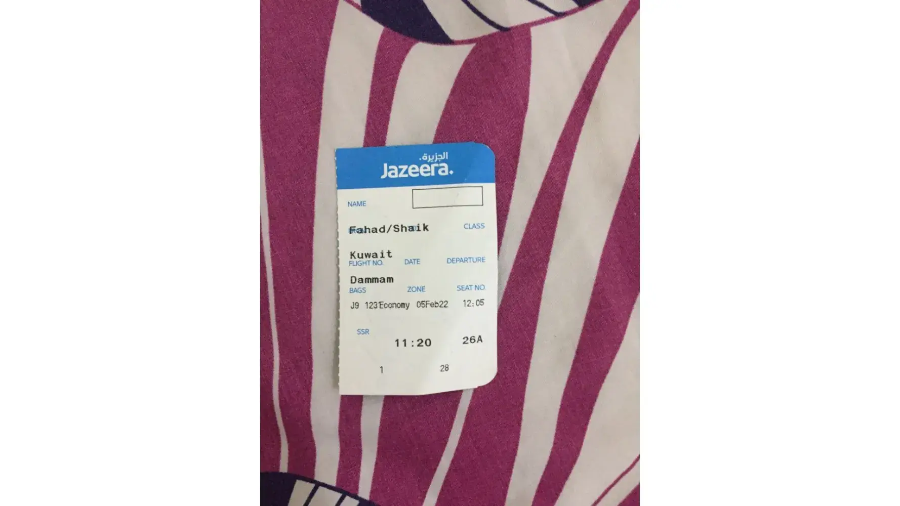 Jazeera Airways Difference timing ticket and bording