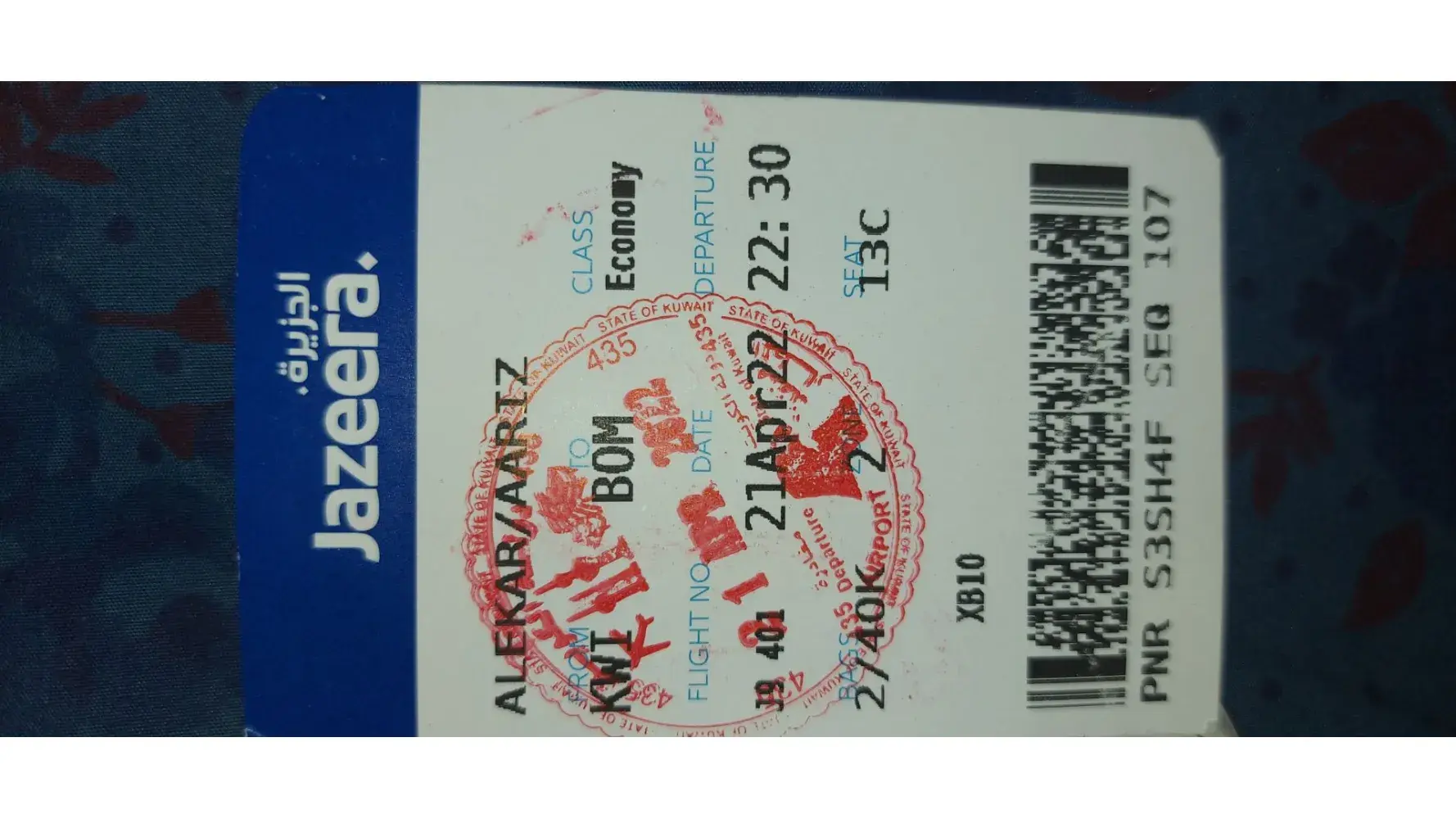 The date is departing from kuwait to Mumbai 21.04.2022