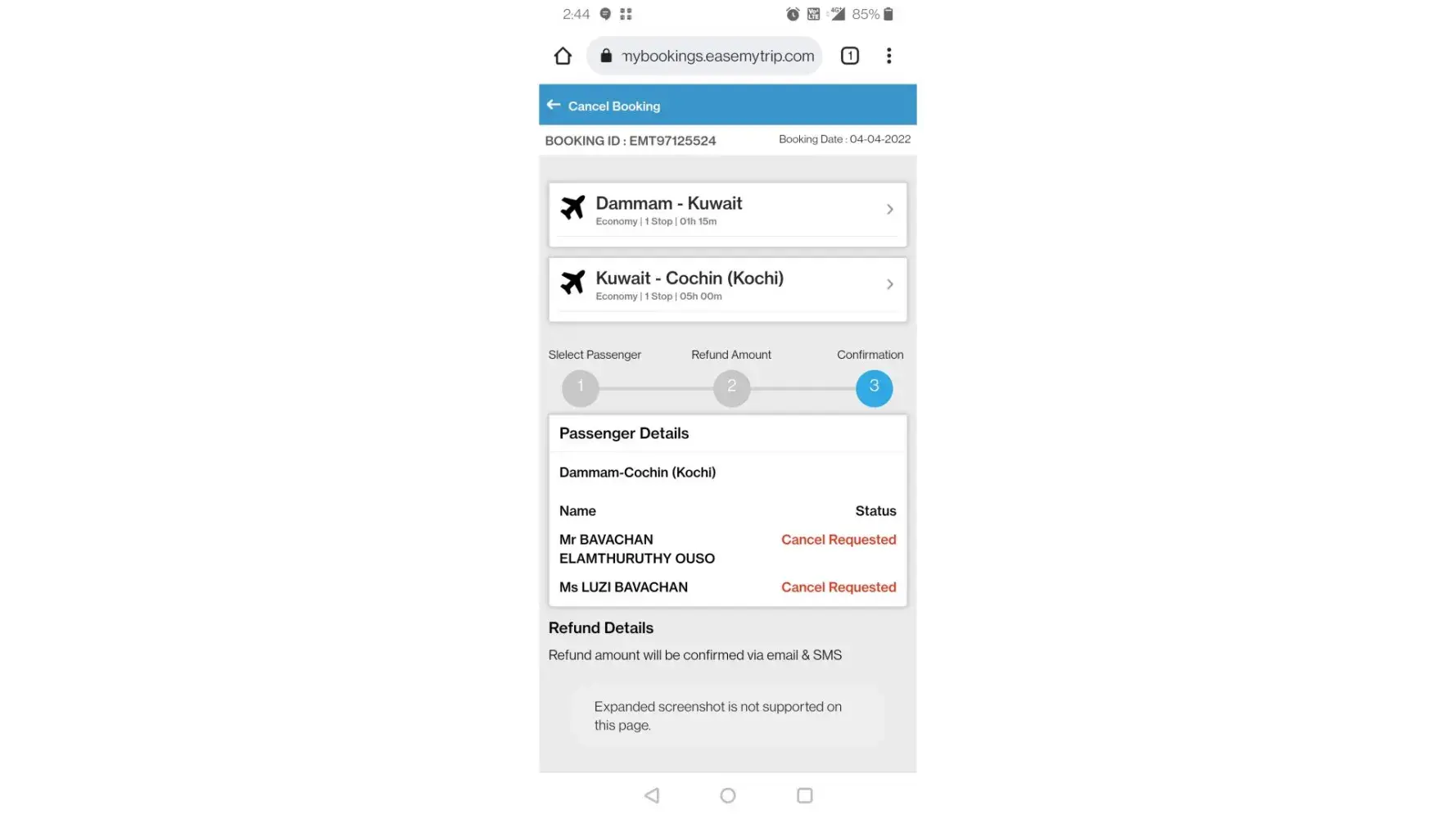 Desired outcome: Full refund of the booking