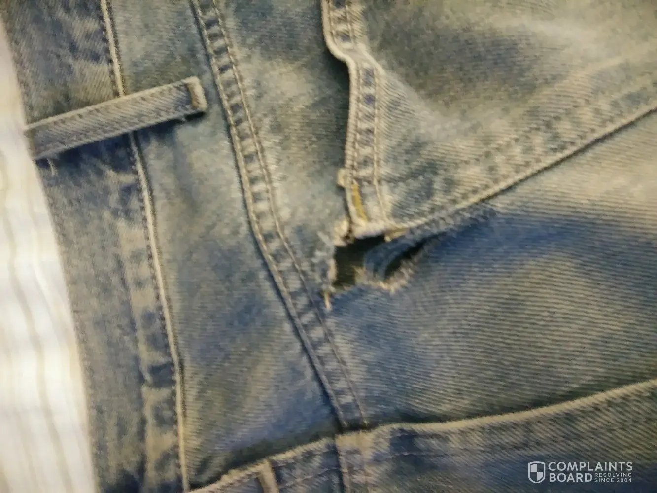 I bought a pair of jeans about 2 weeks ago and have worn them 4 times and the rear right pocket has torn away from the jeans, leaving a gap showing my underwear. I don't have the receipt anymore and I need to exchange this pair for a new one. The jeans are a 38x34 and the RN is 93677. The sewn in tag says F08639, 791079, 5234154, 11-3, 05/18, 001, R8557, C.