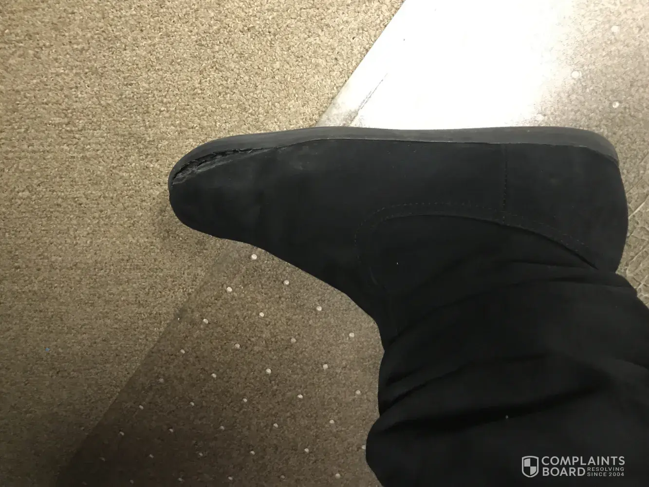 I bought a pair of black slouchy tall boots on Black Friday, wore them about a handful of times and the soles are falling apart :( I'm so upset about this because they aren't cheap boots:( now I can't get a hold of anyone to help me replace the boots or at least give me my money back! I've never had such bad customer service in my life! I'm really upset about it.