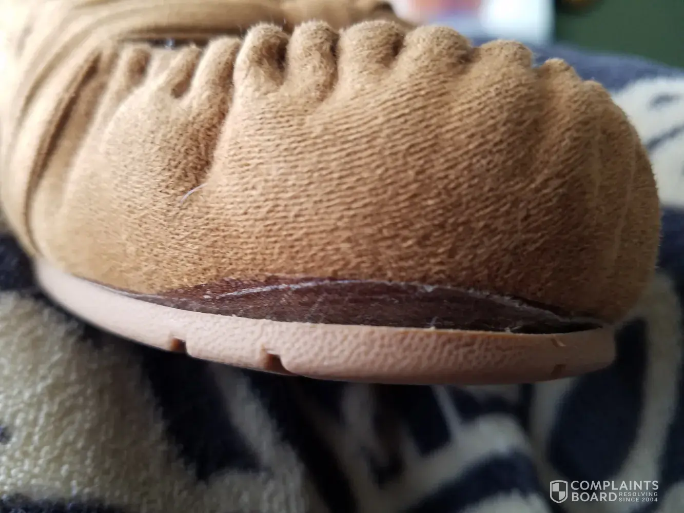 I recieved a pair of arizona jeans company slippers for christmas and not even a month after having them the sole is coming away from the slipper and the side fabric is also coming away from the sole, they have never been worn outside of my home and I'm very upset with the quality of this product considering the price of them, i would appreciate assistance with fixing this issue