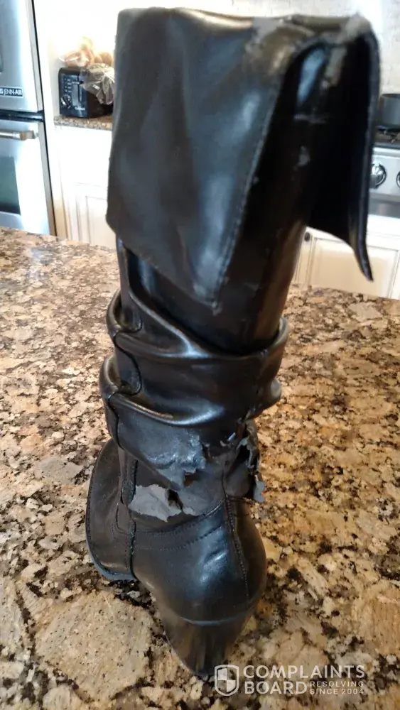 These boots were purchased at JC PENNY and not worn until a company Christmas party in Dec. 2017. They were only worn ONE time and are so disgusting now, cannot be worn again. The back outer layer is peeling off after only wearing them one time. Very disappointed in the product. Won't be buying this brand again and want everyone to know the poor quality that they are selling.