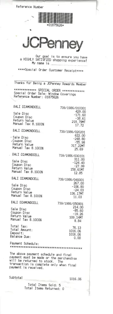I was searching for a bomber jacket and I added a couple of items to the cart. Due to a glitch in their software, the order was placed without my concern. I received an email which shows Tax - TBD, shipping - TBD and final amount as TBD. After a day or two, $32.32 was deducted from my credit card and items were shipped to my home address. Since we did not like them, I returned the order at local JC Penney store. When I returned them at store, I received only $22.66 and I was told the balance will be returned automatically by their online services. It has been almost two weeks over and I am yet to get balance $9.66. Customer support phone services and Chat online services could not fix the problem.