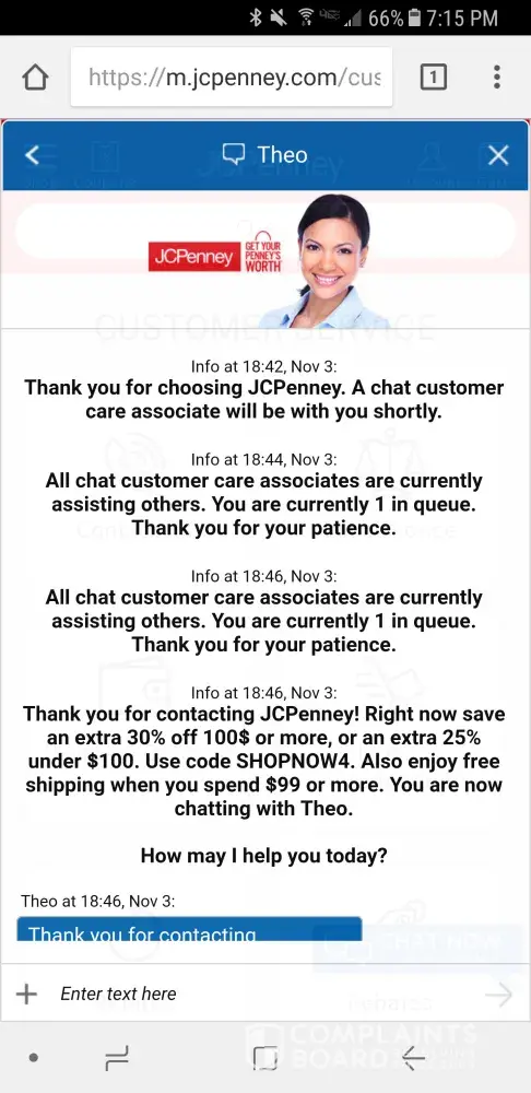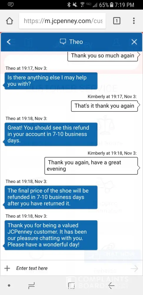 By the end of the conversation with Calvin, I was irate. Being a platinum card holder and having a JCPenney card since 1983, I couldn't believe the way I was being treated. I definitely didn't feel the "feel-good loyalty program" that was advertised.