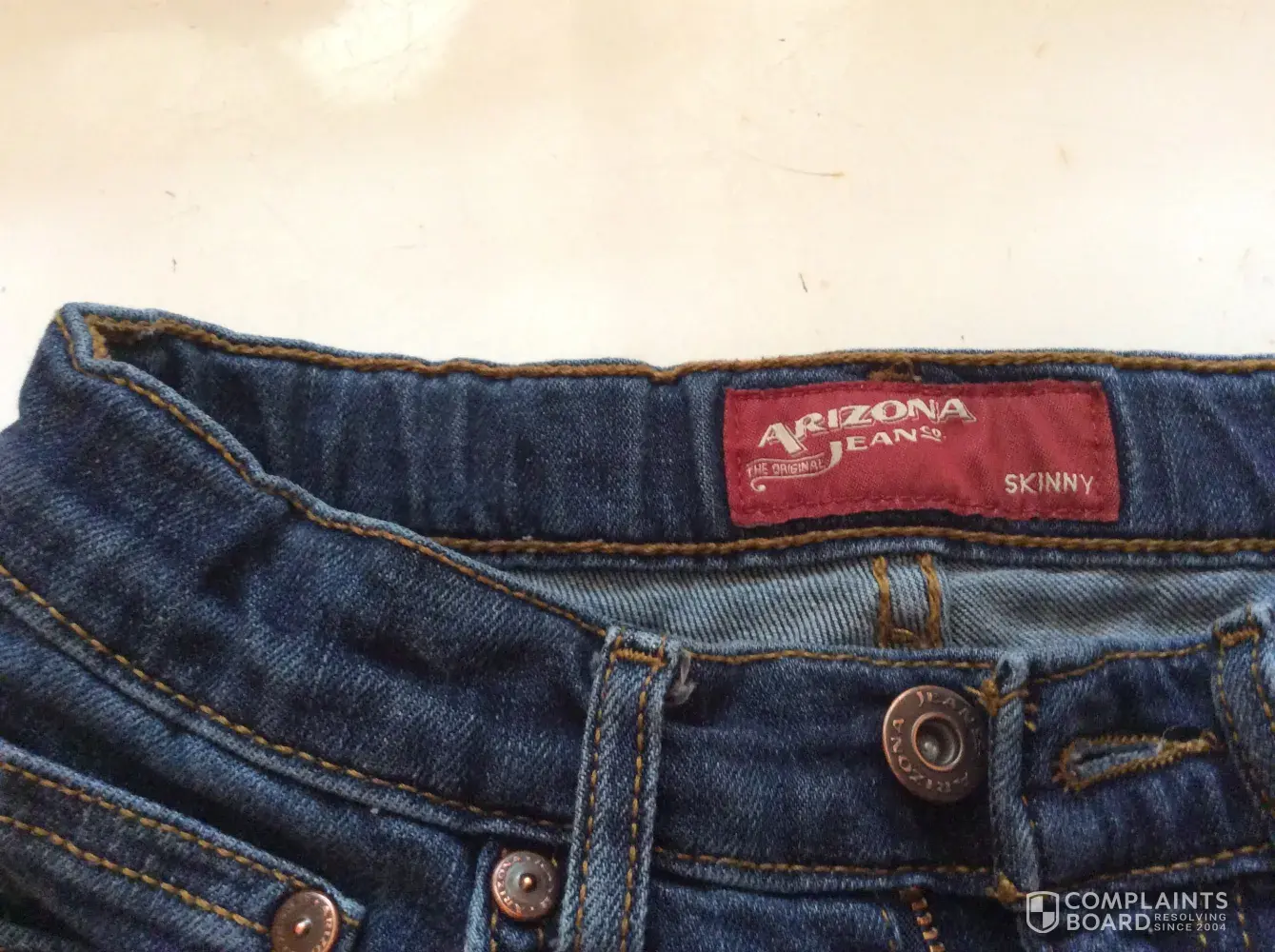 Hello. I bought my 5 year old Arizona jeans for school for the first time ever this year at JcPenny's. He has had 44 days of school I bought 4 pairs so he did not wear the same pairs everyday that ripped. Two of them ripped at the knees. 8 am having o go back and buy Levis this time and hem them. Called JcPennys to talk to someone and got hung up on. Not very nice. I wanted to let you know it would have been nice for them to replace the pairs that ripped. Customer service is nothing these days. Your jeans don't hold up.