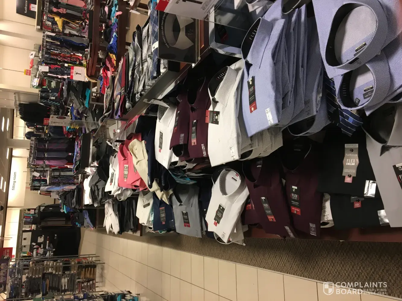 Please see the attached photos of this dump. It appears no one has spent any time nor attention to the men’s section. The photos say enough. Looks like a tornado went through there! I used to spend a lot of money in this store as well as my father. These days there are no ties married with shirts and if there are whomever is doing the matching needs a new job!