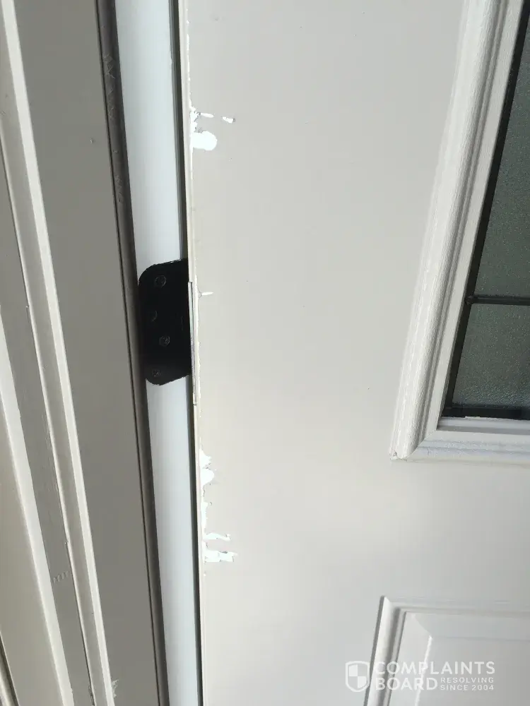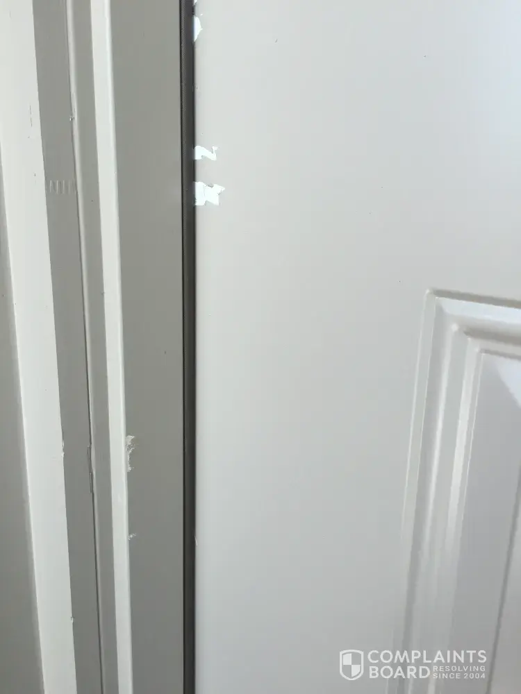 I ordered a Samsung refrigerator from JCPenny.com on June, 18, 2017. On June 23 at 9: 30 am, the delivery crew called me and indicated that they are ready to deliver the Samsung refrigerator into my house. Around 10 am, the crew arrived and first showed me the two dents on the left side of the refrigerator. One of the men offered me $150 allowance for the dents if I decided to keep the refrigerator, which I eventually accepted. When the crew moved the refrigerator through the front entry door, they did not take down the door initially (i.e., take the door off of the door frame). Instead, they tried to force the refrigerator into the house with the door hung on the door frame. This caused visible damages and dents on the brand new front entry door as well as the door frame. Once they realized that they were unable to move the refrigerator into the house, they decided to take down the door. However, the damages had already been caused.