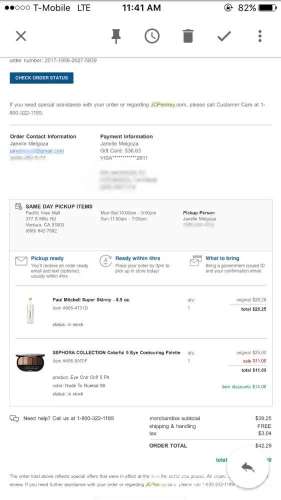 The order I placed on Saturday June 29th at 8:05pm Order [protected] I didn't receive a text to pick it up until July 30th at 7:46pm and the store closes at 7:00pm, so much for a 4 hour window that your order will be ready to pickup from order time if placed before 3pm.