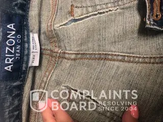 I bought 5 pair straight leg jeans in December of 2018 and started wearing them in February 2019. All 5 pairs have ripped out at the crotch or the back pockets. I maybe got to wear them 4 or 5 times each. I am sending pictures of the last 2 pairs. Arizona jeans are not made of quality anymore. Think it's more about quantity. I'm going back to Levi