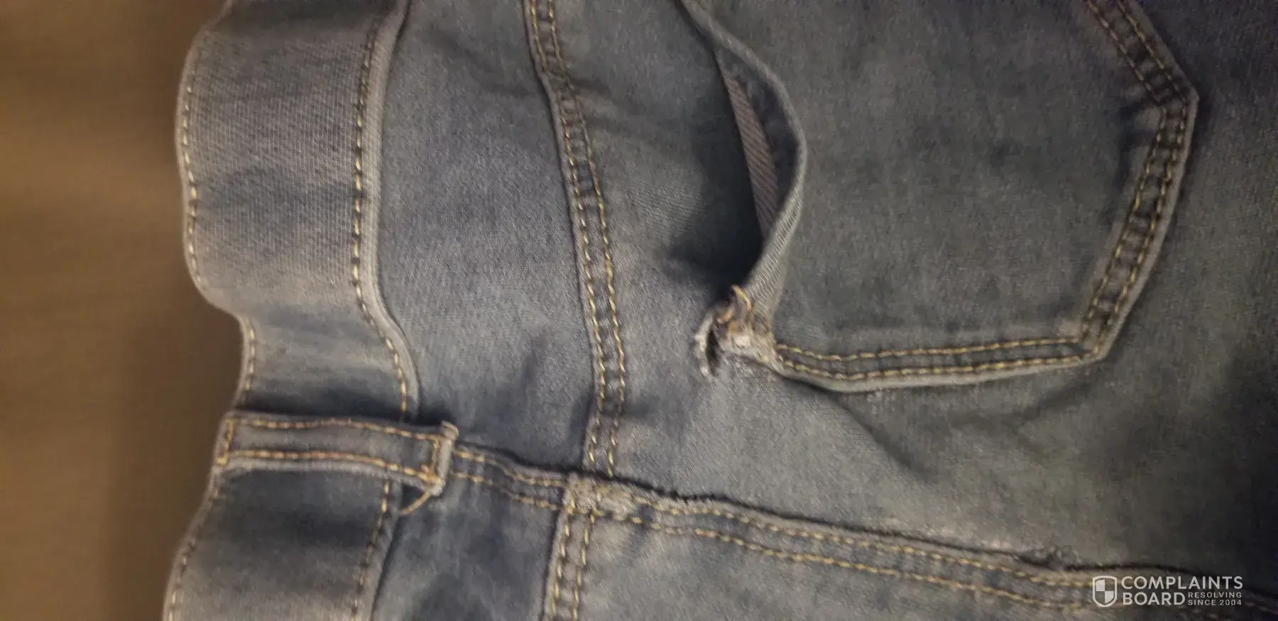 I bought 2 pairs from jc Penney in gardendale, al. The jeans on rear nsear pocket material separated. Like a it had been cut with a knife.