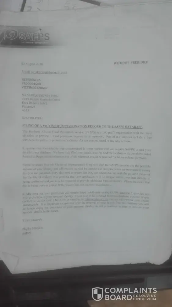 In june 2018 I discovered throug my bank that my identity hadn been admin marked for credit placed by jd group then underwent the clearance investigation. I later received clearance letter proving that fraudulent transaction under my identity number during beginning of 2018 had occurred. I have a received a sanfps letter.