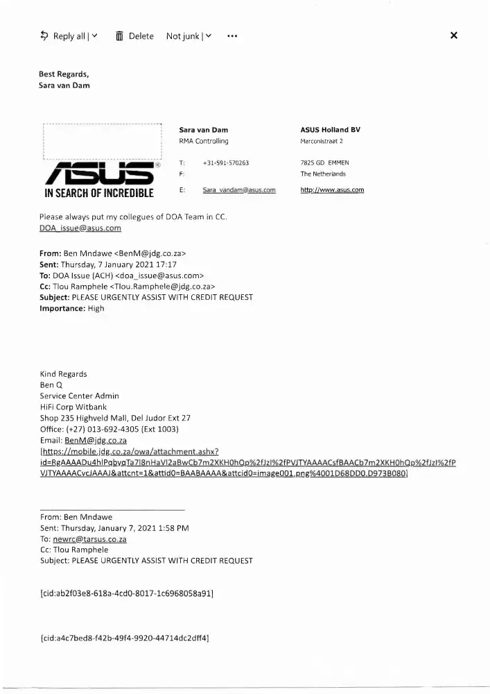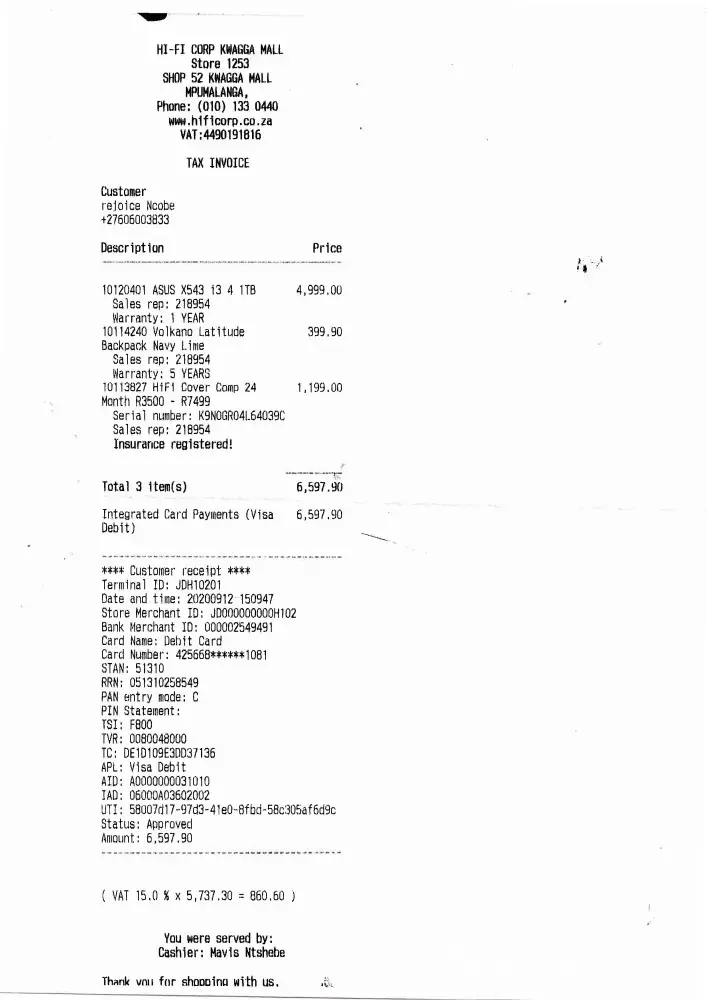 I bought an Asus Laptop from Hi Fi Corp Kwagga Mall on the 12th of September 2020.It started making noise soon after and when we went to wanted to return it the followimng week we found the store closed.As the only store near was witbank or pretoria about 90km from kwaggafontein i only got time to go to Hi Fi in Atterbury who took the laptop for repairs and it came back and did the same problem.i again went to witbank hi fi corp and told them of my predicament and was told that they will ask for a credit and today(01 february 2021)they told me the credit was rejected and they have repaired it.Is it my fault that i bought from a branch which later closed down and ultimately have to drive all these kilometres to be told that its my fault i did not come within the stipulated time.Its having the same problem it had before and all i am getting there is nothing we can do, it has to be taken for repairs again.