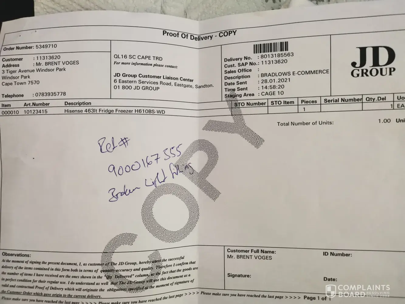 I also called the Call Centre on the day, 29 Jan 2021 @ 10:02, to log a complaint, ref# [protected].I called them again on the 4th Feb 2021 as I had not heard back from them, only to find out that the issue has been marked as resolved 😡