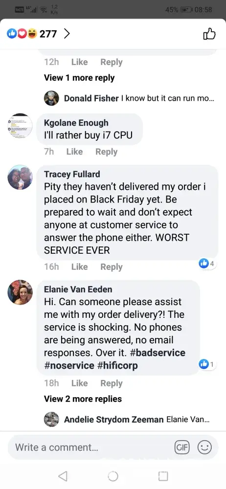 I am really not someone who complains but HIFI CORP has me up in arms waiting for a fuxking washing machine to be delivered.