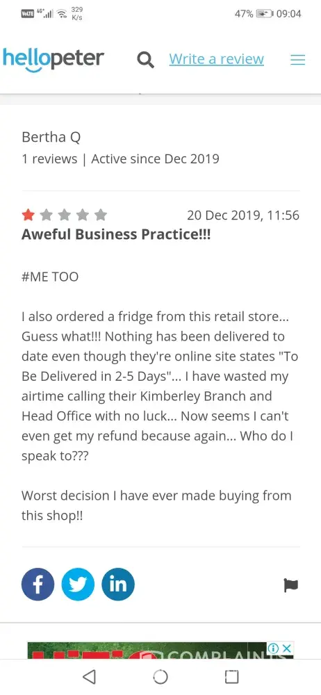 Please get someone in charge from your head office who can assist or I will be getting the south African revenue services to conduct lifestyle audits on said employees and hawks specialized anti corruption unit involved as well as local TV and investigative journalists involved.