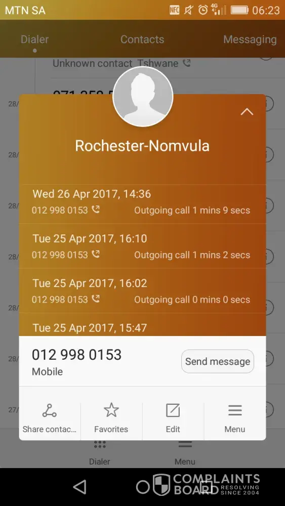 A lot of phone calls were made between me, Chipo from the branch, my wife and the driver on Friday 29 April: