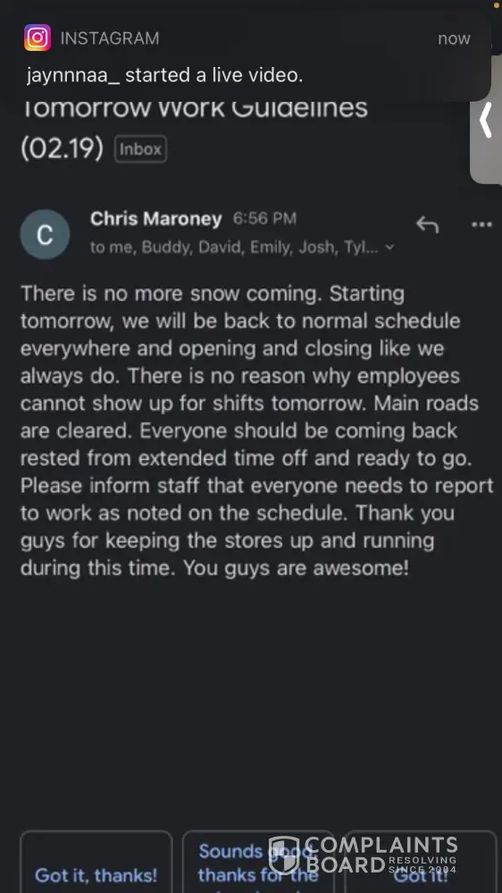 We live in La Vergne, TN. My daughter has been working there a few months now. First complaint is how they keep my daughter there till around 11 on a school night for a meeting. High school students should not be there that late on school night. Second one is the lack of care they give to there team / parents that drive their kids to work. I'm attaching a...
