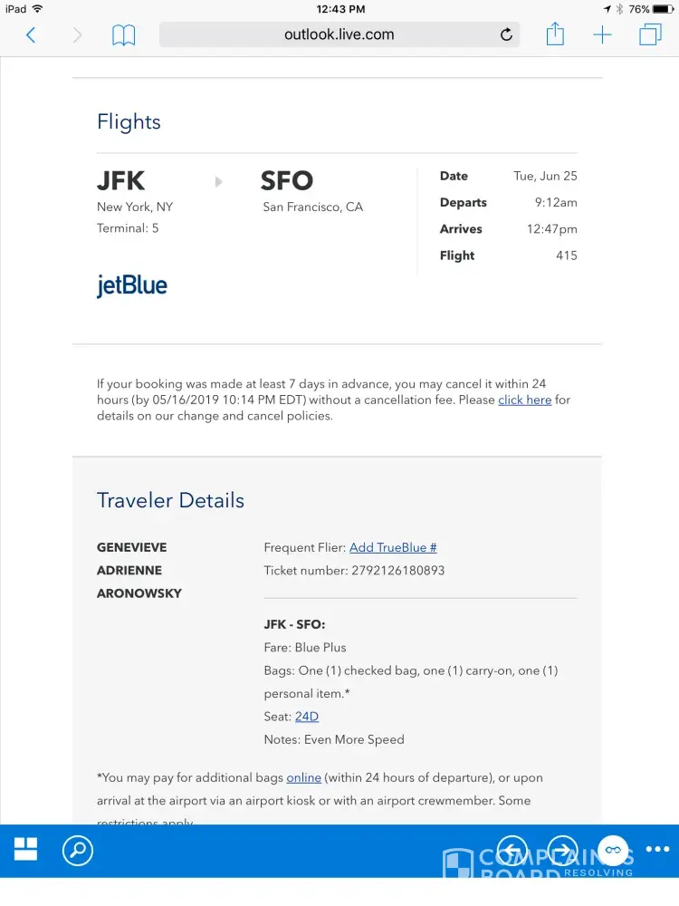 JetBlue Airways Complaints Page 12 of 21