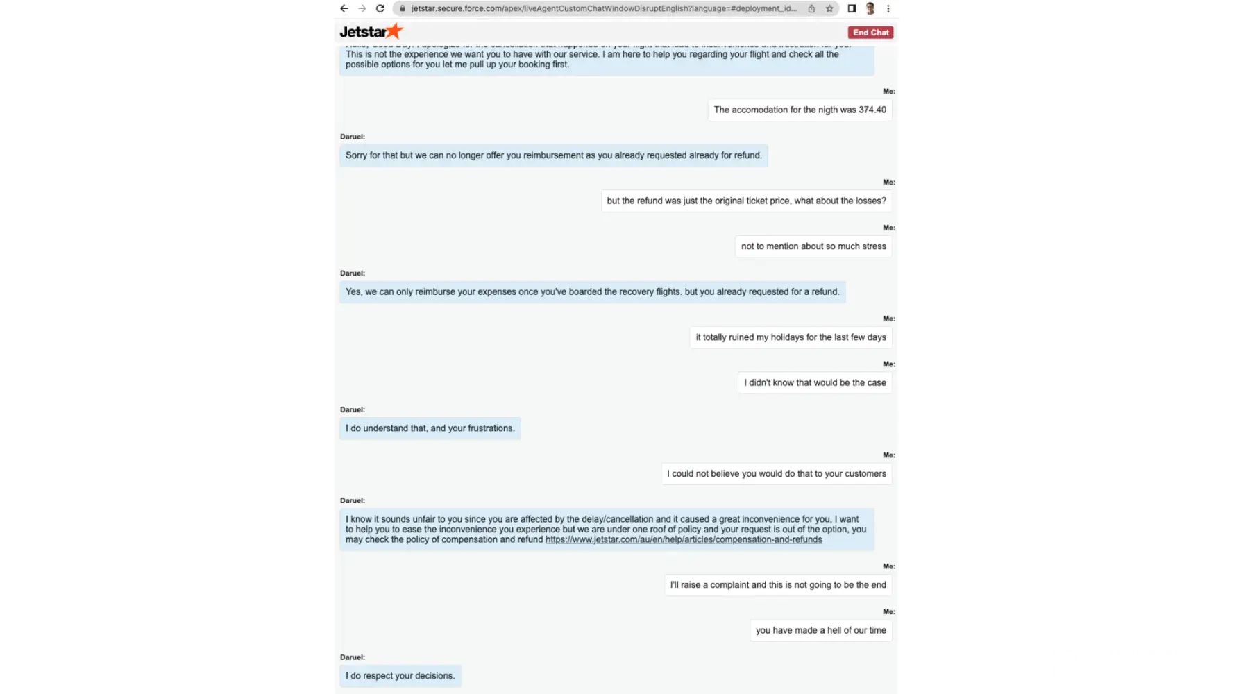 This was extremely a stressful time for me and my children as we had already gone through so much with Jetstar, with being stuck over in Thailand for a further week.