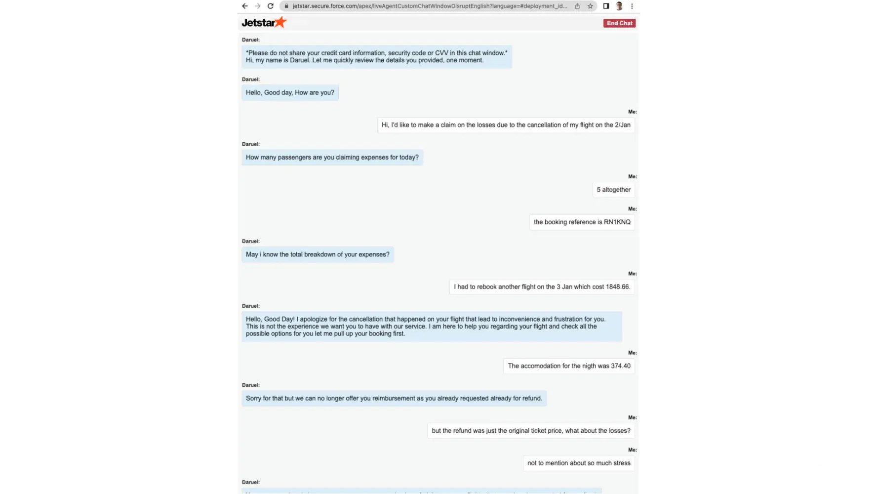 Desired outcome: I'll need Jetstar to compensate me for the loss of money in part or full. I also demand their apology for the stress, loss of time and inconvenience that have caused.