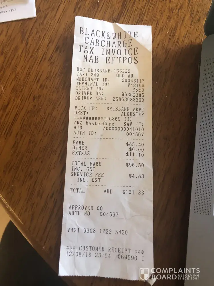 I didn't arrive to brisbane until after 11pm therefore had to get a cab because every one was busy that night with kids to pick me up at that sort of time. Please see my taxi receipt attached also.