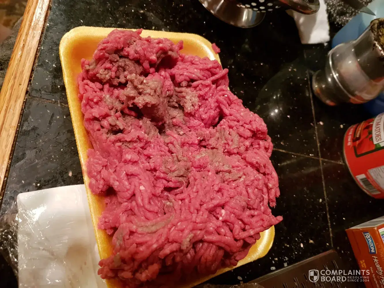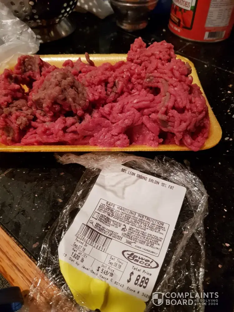 Earlier today (9.7.2018) I bought lean ground sirloin at the Evanston Chicago ave. branch. I requested the butcher to ground the meet for me but he refused, so I had to buy a package already made. Imagine my disappointment this evening when I found that inside the red meet where big chunks of brown meet with a bad smell. It's quite obvious that old meet was meet to fresher meet in order to give the impression that all meet was of high quality. Needless to say, I expect a full refund and compensation for a ruined dinner. I'm appending the receipt as well as pictures of the meet.