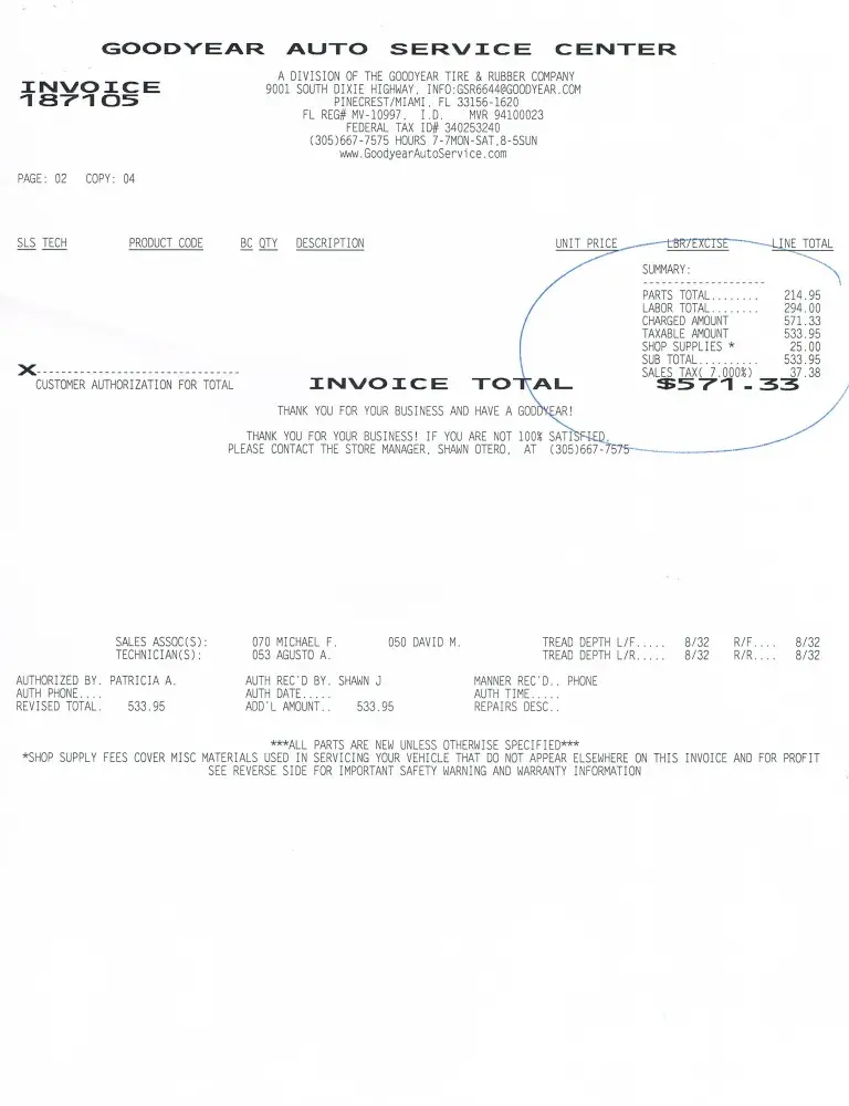 I took my SUV back down and Nick then told me the oil plug was stripped and blamed it on the previous service center, . Then he showed me their work order neatly printed out with notes in the Service comments that the "Drain Plug Stripped PTS". Then I showed them my copy. Mine had the information pushed up all the way into the service checklist section which I didn't see. So to recap- they never mentioned the plug problem and tried to hid the fact in the invoice notes. Pretty clever I'd say. Nick offered to try and tighten the bolt but it still leaked. Since the manager was not there I would have to come back on Friday