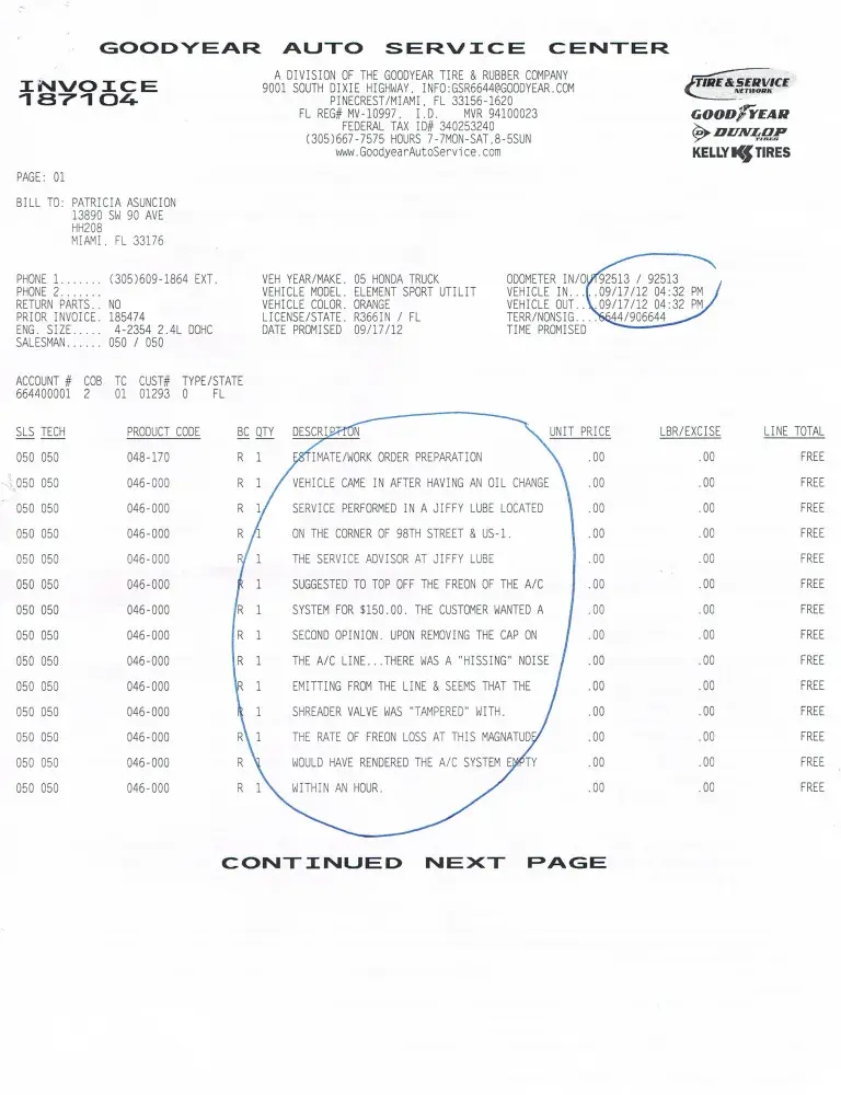 I went in for a routine oil change but then was informed I needed more work. My A/C worked fine, but I was told it would cost $150+ for A/C service because I was "low on freon" so I went immediately to Goodyear, eight blocks away, for a second opinion. (Recently, I had had my A/C repaired there.)The Goodyear mechanic put in writing that the A/C had been...