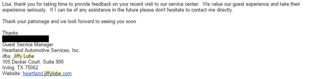 Jiffy Lube emailscustomerservice@jiffylube.com100%Confidence score: 100%Support