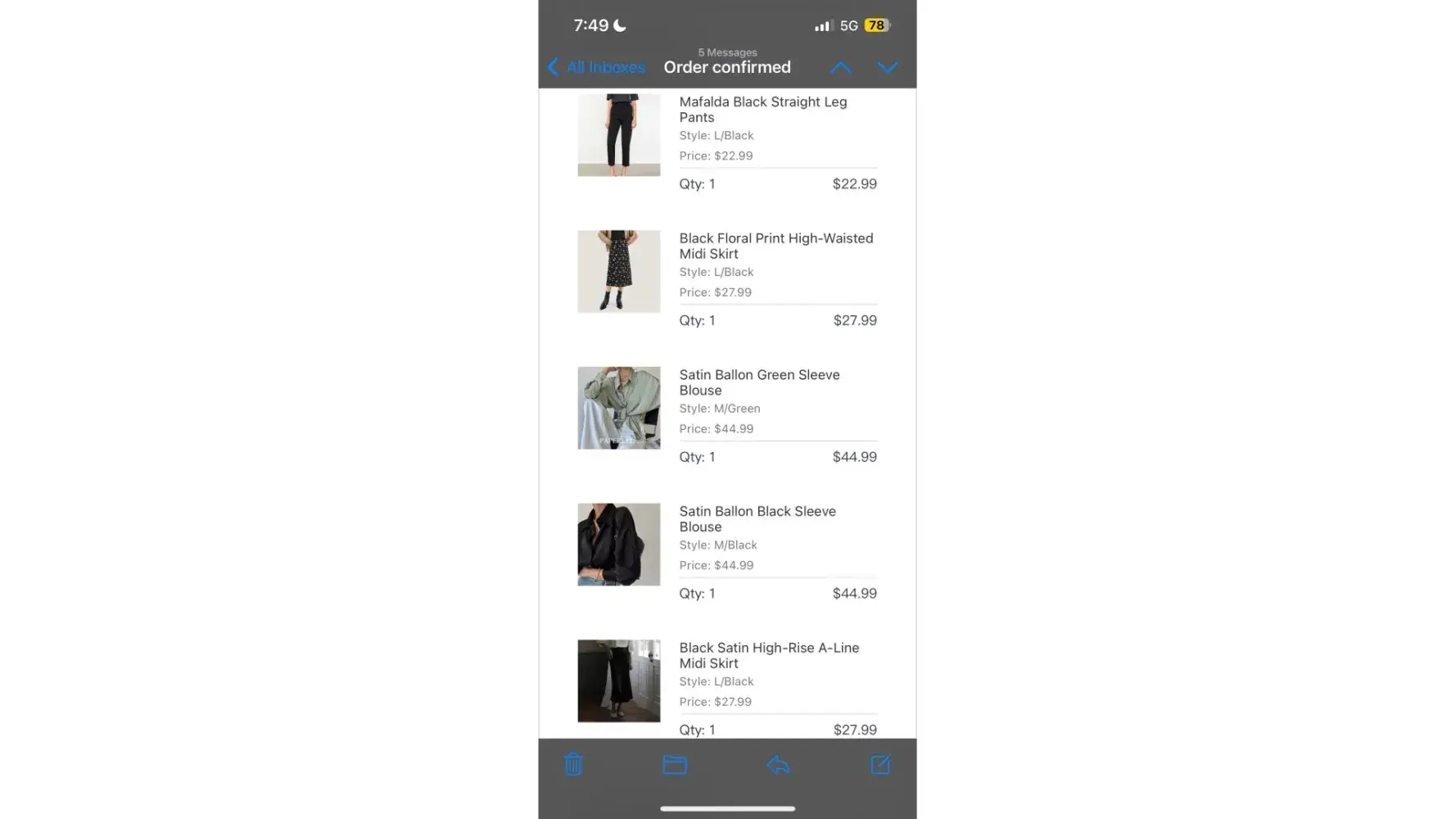Today it's August 16th and I still have not recieved my items. I sent an email inquiry about the clothes in April 2023 and they asked me if I'd like to exchange all the clothes in my order for something else, and I said no, I ordered these items as they are what I want.