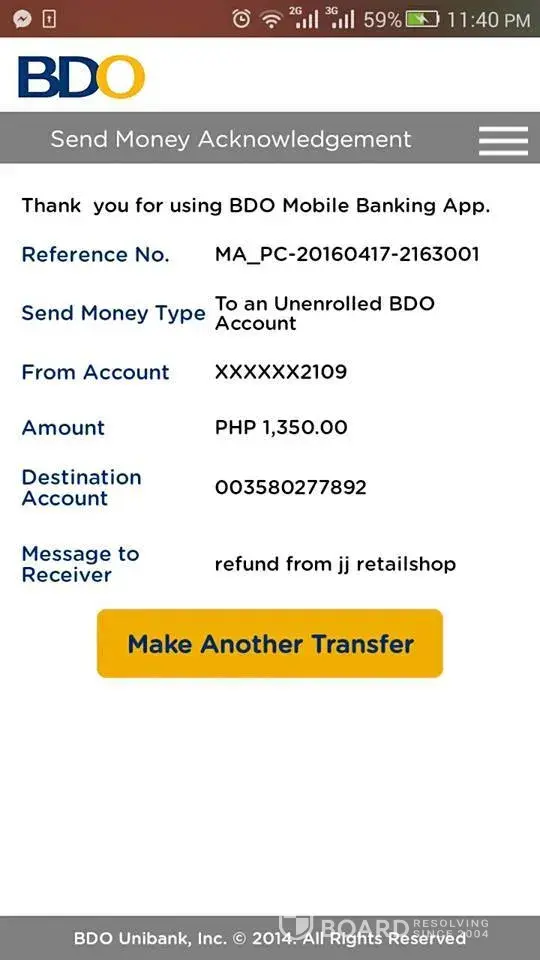 item refunded to the complainant