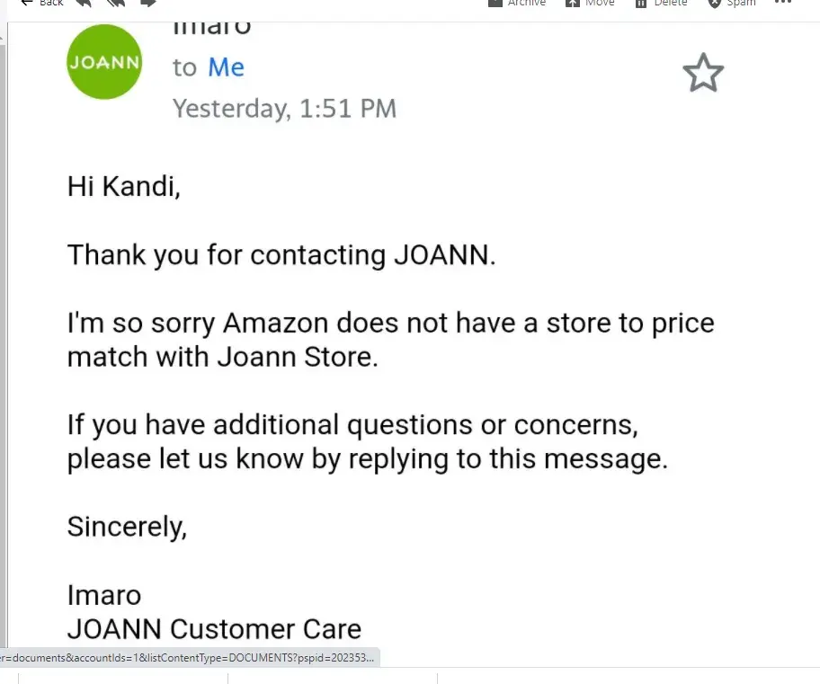 Multiple times I have requested to unsubscribe from JoAnn Fabrics emails. JoAnn still sends me multiples everyday of the week. You are effectively taking away my right to choose whether I want your communications or not, thus violating the laws put in place to protect consumers. If JoAnn does not cease and desist with spamming my email box, I will file an official complaint with my State Attorneys General to stop you from continuing to violate my rights. I have also repeatedly attempted to block your email address to no avail — no doubt, JoAnn has some way of circumventing the block. You spam me everyday. This whole experience has been so offensive, I will never shop there again. My experience has caused me to conclude that JoAnn Fabrics is a corporate bully who victimizes their customers. I will warn others about your underhanded practices. I will stay the course until I get rid of your daily spam in my mailbox. Greed drives this offensive action conducted by JoAnn fabrics. You will never get my money again. Unsubscribe me, just as I have repeatedly requested at least 15 times and still counting.