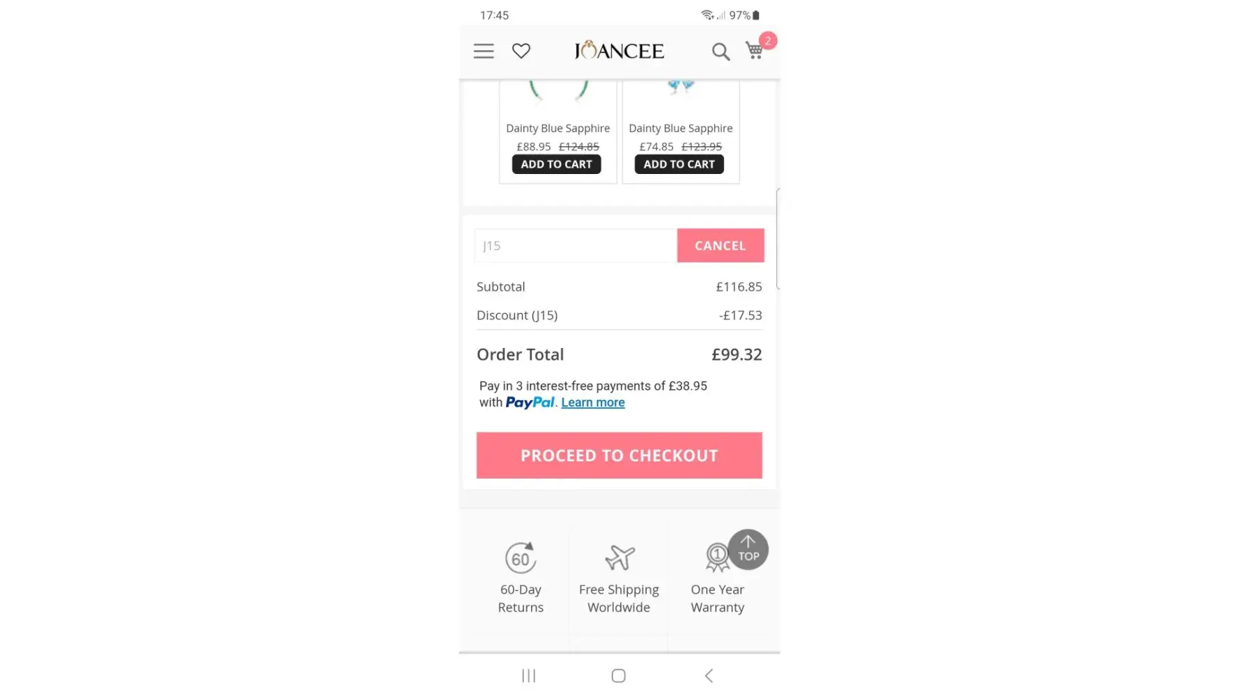 I received my ring & didn't like it for me albeit was beautiful. I sent 2 messages & an email saying I wanted to return the ring so I needed to know the process. I have not received a reply. I even ordered 2 more rings, which I am starting o regret. I thought it would be a smooth process returning & reordering. I am very disappointed in this company. I will not recommend Joancee to anyone.