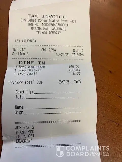 Basically, that was the worst seafood I ever had and I ate there many time, but always was okay. This was not worth being free let alone I payed AED 393. Over $100 USD.